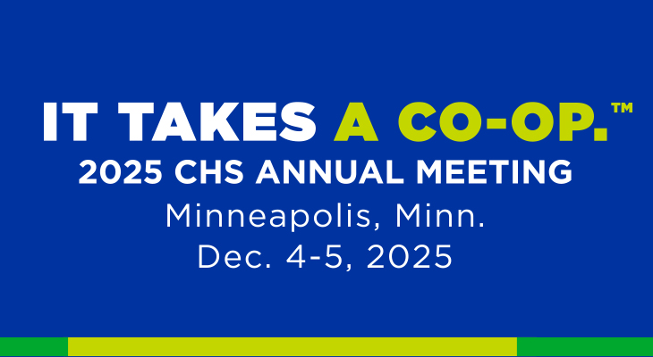 Join us at the CHS Annual Meeting, Dec. 4-5, in Minneapolis, Minn., for education sessions, business updates and CHS governance. Find the full agenda on the registration site. Hotel registration closes Nov. 9.